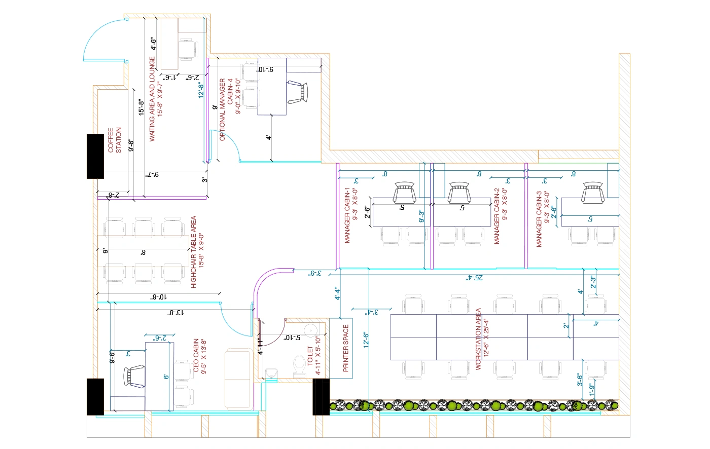 Workstations: The layout includes workstations designed to accommodate 20 people, promoting an efficient and collaborative work environment.
